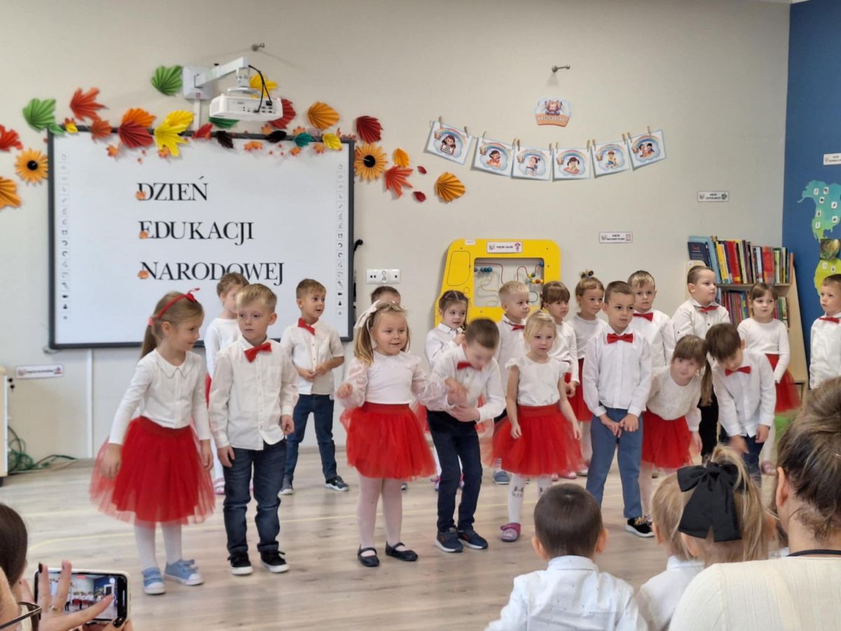 W naszym przedszkolu świętowaliśmy dziś Dzień Edukacji Narodowej. Dzieci z wielkim zaangażowaniem zaprezentowały program artystyczny, wyrażając wdzięczność wszystkim pracownikom za ich serce i codzienny trud .To była wyjątkowa i pełna ciepłych emocji uroczystość.
