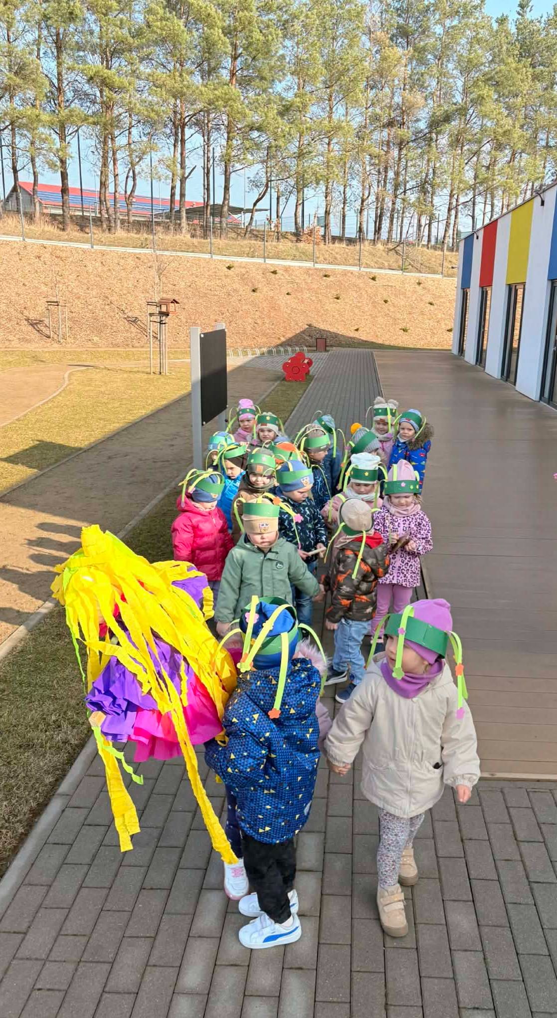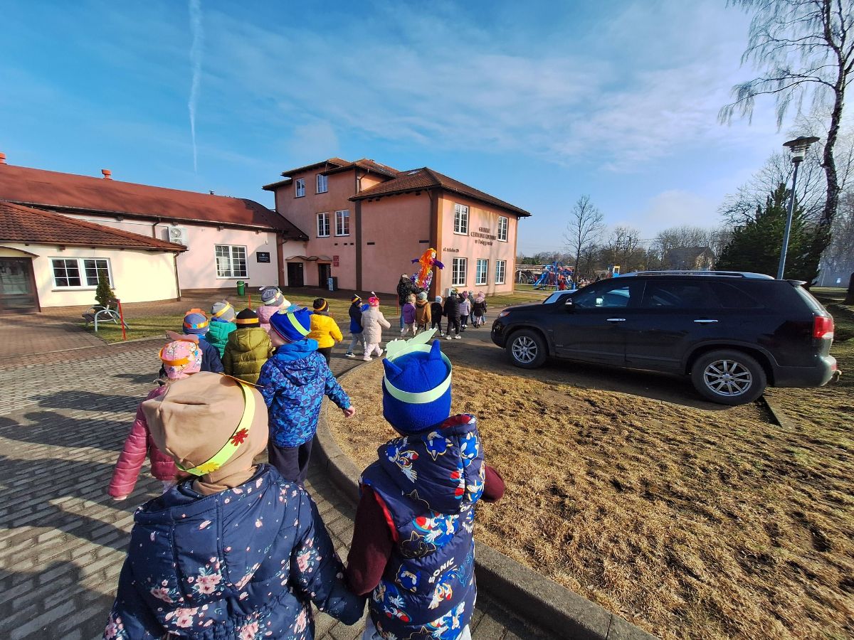 Dziś nasze przedszkolaki z radością przywitały długo wyczekiwaną wiosnę! Ubrani w kolorowe stroje udaliśmy się do Gminnego Ośrodeka Kultury , gdzie czekało na nas ognisko z przepysznymi kiełbaskami.